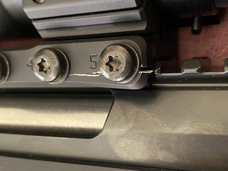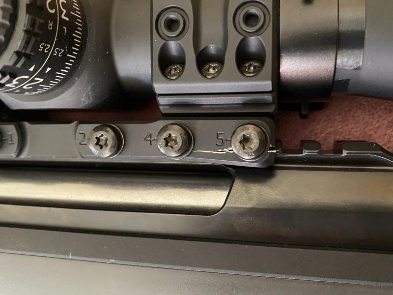 Os cuento compré unas monturas Spuhr nuevas para anilla de 34mm y las monte este tiempo atrás en un Sako S20 dándole el par de apriete con llave dinamométrica a los tornillos que las cogen al carril de 45lb según marca el fabricante. Hasta ahí todo bien le pongo a tiro y perfecto le meto en el armero y hasta hoy que le he sacado para ir al campo de tiro y me acabo de encontrar esto…..