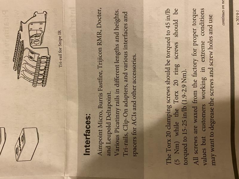 Compañero, imposible que eso vaya apretado a 45 L/ft (libras/pie), porque eso son 200 Newton, una burrada de apriete, la que llevaría una tuerca enorme del cigüeñal del motor de un coche, incluso 4.5 L/ft, es mucho apriete, serian 20 Nw/m........imposible que unos tornillos de 6 mm para una montura lleven tamaño par de apriete.....