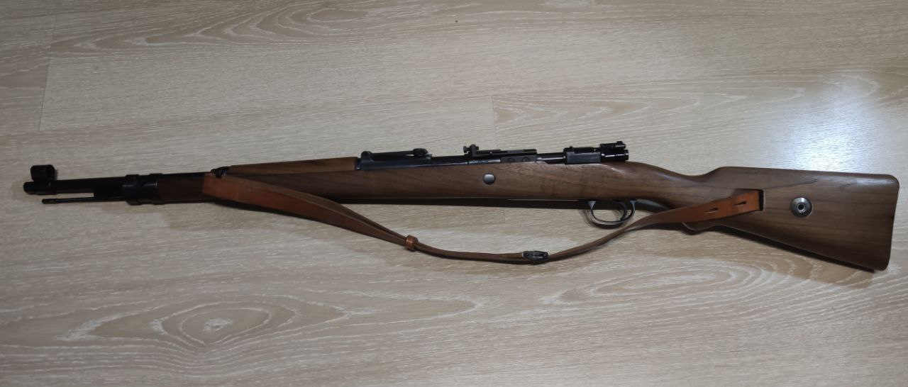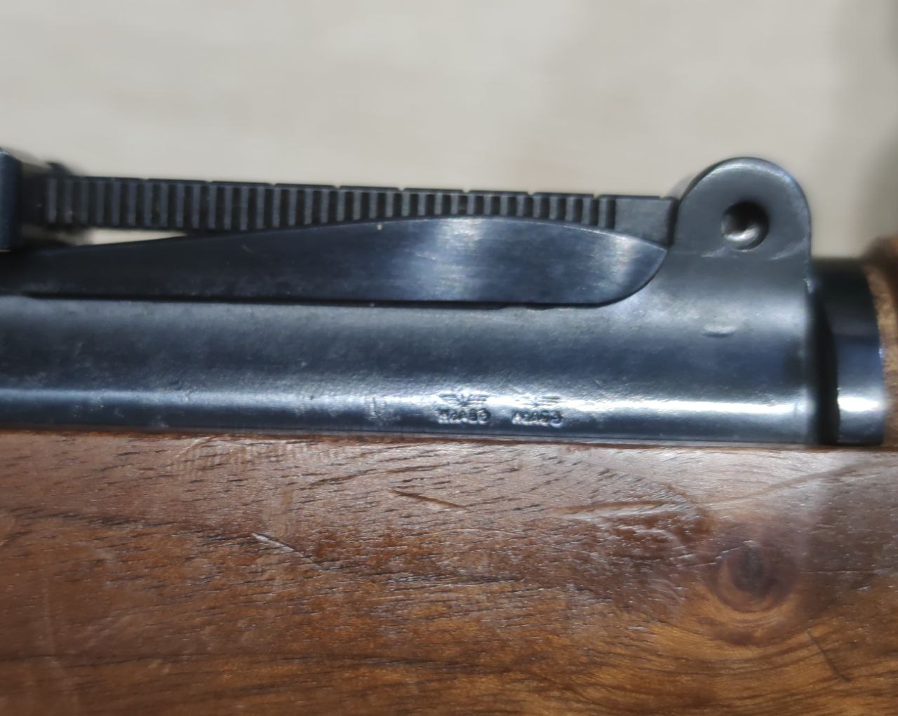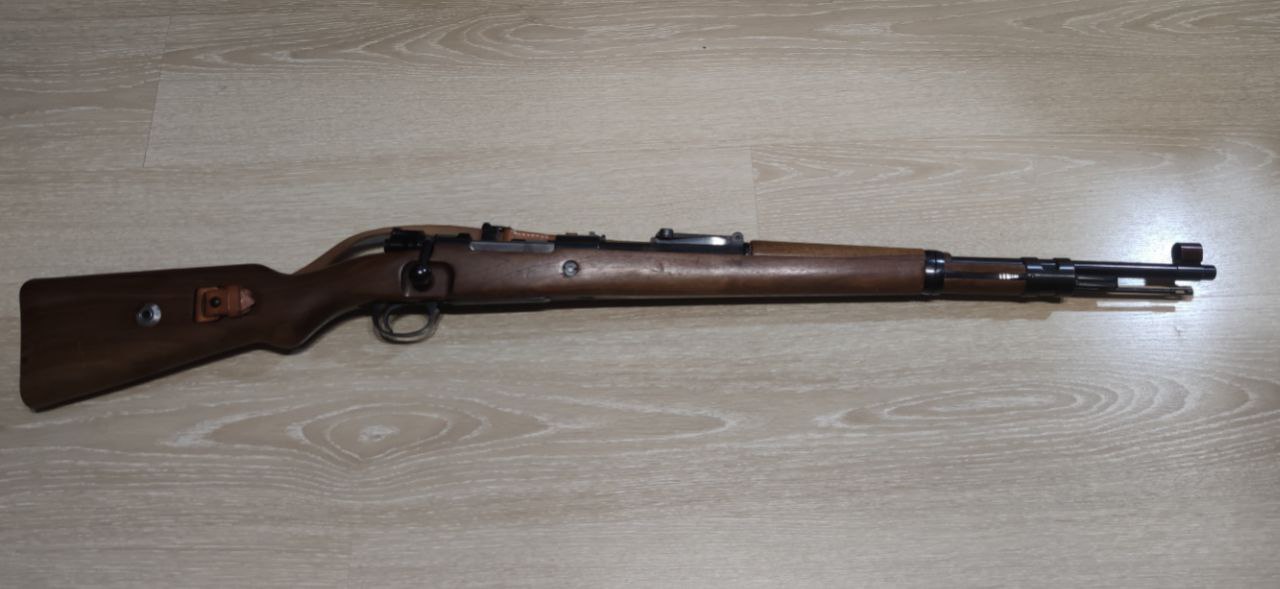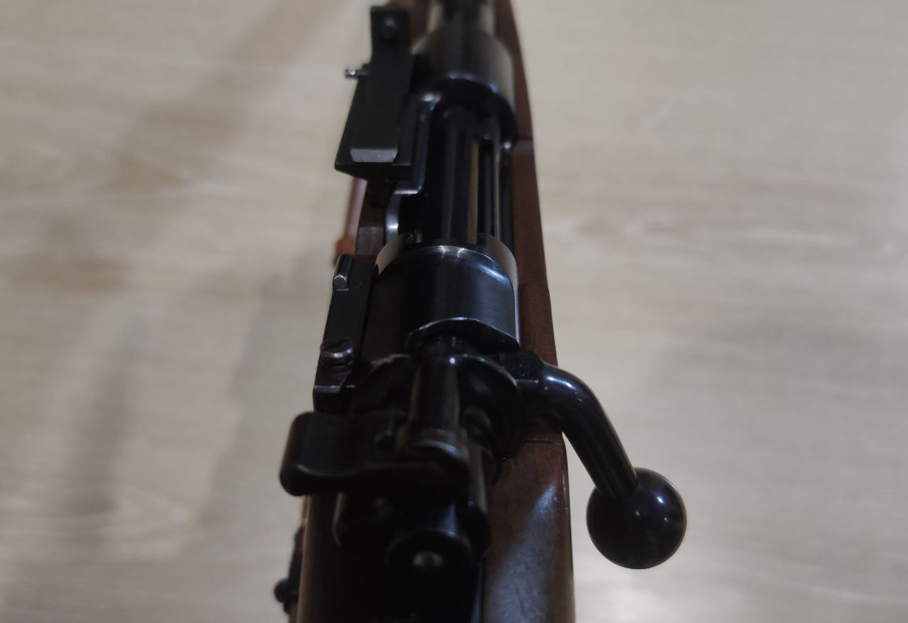 La acción parece civil y el cañón moderno, posiblemente de posguerra. El alza lleva el Waffenamt 53, al parecer, que se corresponde con la factoría MAN (Maschinenfabrik Augsburg-Nürnberg A.G.), no correspondiente por tanto con el fabricante Mauser. Por último el montaje de francotirador se corresponde con el del Máuser Sueco, que no es un Kar98.