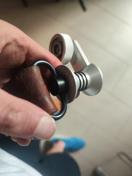 A ver enganché la correa al tope de mano, y no hay manera de sacarlo, le doy al botón que lleva el enganche, el muelle se hunde pero no sale. Es la primera vez que pongo la correa en el tope de mano, bueno es la primera vez que uso una carabina.