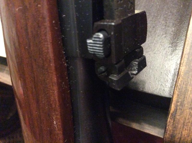 Pero lo que más me preocupa, y para lo que pido vuestra ayuda, es el tema del ajuste en DERIVA: para que los tiros vayan medianamente al centro, he tenido que mover el tablón hasta casi el límite. Adjunto una fotografía que espero se cargue medio bien para que veáis a un me refiero: el tornillo parece que se va a salir...