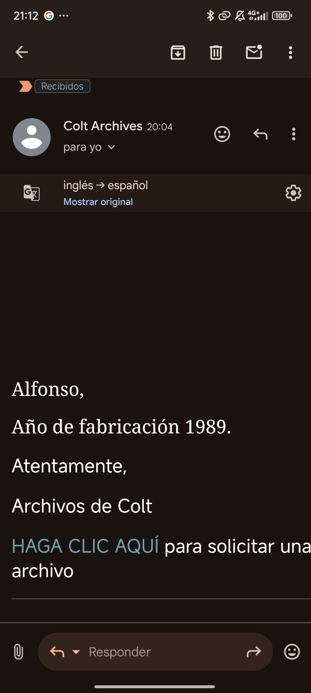 Gracias, ya probé eso pero no hay datos con ese número de serie, he mandado un correo a atención al cliente de colt usa