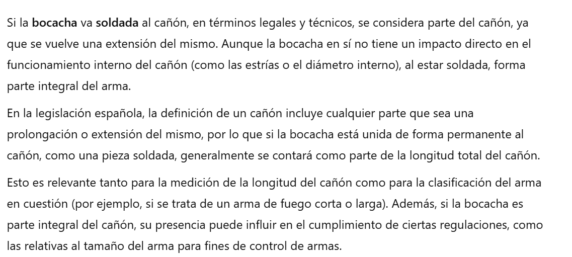 La duda era por que tercio este dice de soldar la bocacha y esta claro que lo dicen por eso, no se si se puede hacer o no, ellos no llevan ninguna bocacha soldada en las armas que tienen en Polonia donde la legistacion es mas perimisiva, sera por algo, no obstante te dejo la opinion de chatGPT sobre el tema.