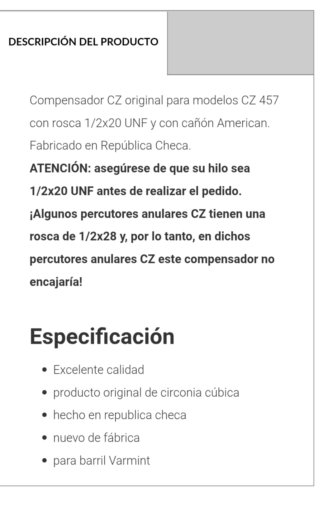 Soy un novato en todo esto y me surge la siguiente duda, que compensador llevaría un CZ 457 sintético en 17 HMR según la web de CZ existen estos dos modelos, la rosca es la misma en los dos y coincide con la de mi cañón pero no encuentro diferencias entre los dos y me crea dudas.