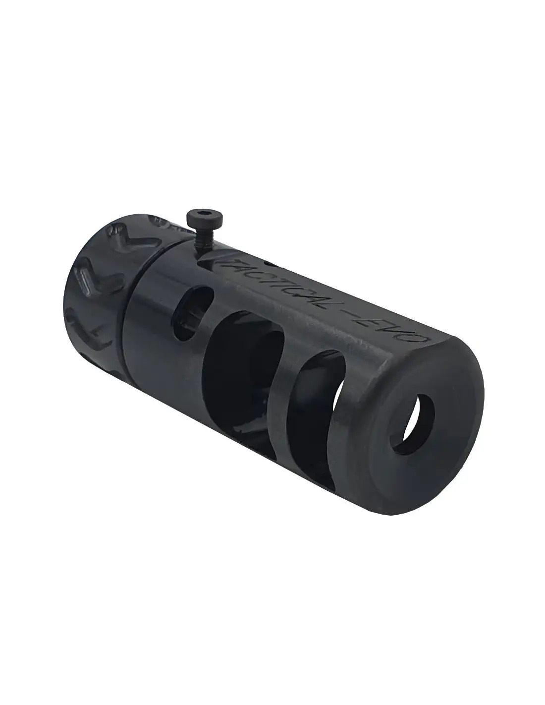 ante la dificultad de roscar un cañon de rifle,para poner un freno de boca,se me aconsejó poner uno externo.Sin rosca,simplemente apretado al cañon con tornillos.