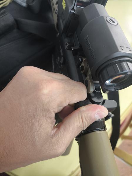Y la otra pregunta es, cuando tiro de la "corredera", uso un dedo en cada enganche, pero el enganche izquierdo tiene un botoncito que desbloquea la "corredera". Se puede tirar para atras pulsando solo ese botoncito, o es mejor con ambos dedos?