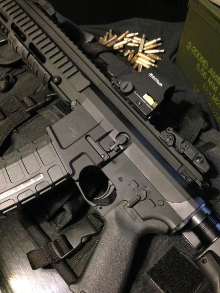 En el Schmeisser tengo puesta una anilla ASAP de Magpul con una correa MS3 de la misma marca. Es bastante cómoda y se puede cambiar de uno a dos puntos. Además, con la anilla esta y la correa de un solo punto puedes cambiar el arma de mano con mucha facilidad y sin tener que quitarte la correa.