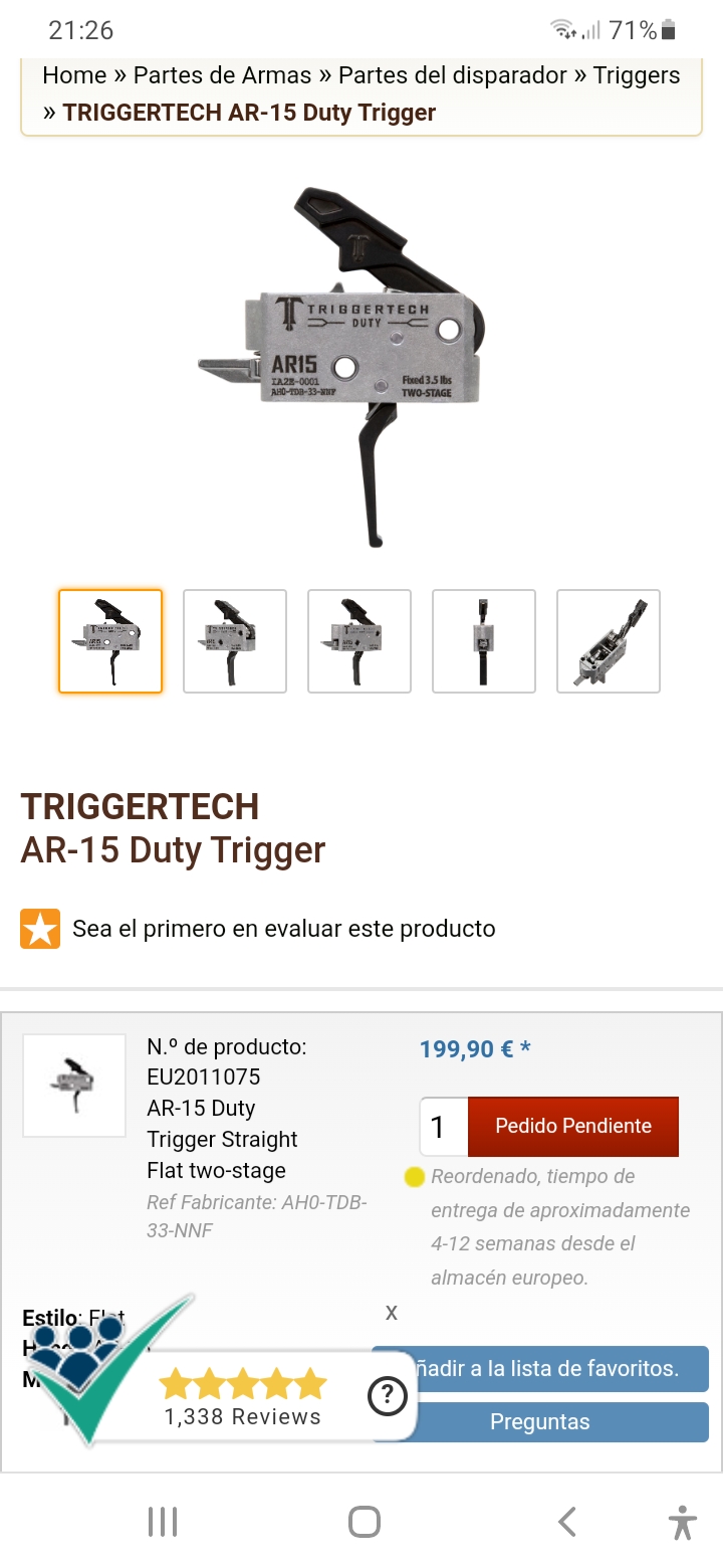 Me gustaría cambiarle el disparador, pero me joderia gastar 200 euros en un triggertech de dos tiempos y no me percutiera las balas.