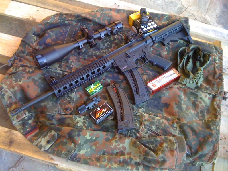 [/quote]Como lo prometido es deuda y quiero ser una persona de palabra, hay dejo una foto de la carabina. Tengo una plancha de kydex para hacer una carrillera que me eleve la posición de la cara un poco pues el visor es mas bien alto. Y un amigo tornero me ha dicho que me va a hacer un freno de boca de aluminio por hobby( por eso no tiene la rosca frontal) así que aun no anda terminado del todo. Tal y como esta pesa 3813gramos esta así que genial.
