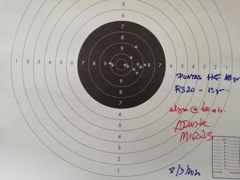 Con recarga, puntas prvi, rs60, 47,5 greins conseguia meterlas todas en el negro, puntuaciones aceptables, agrupaciones bastante abiertas.