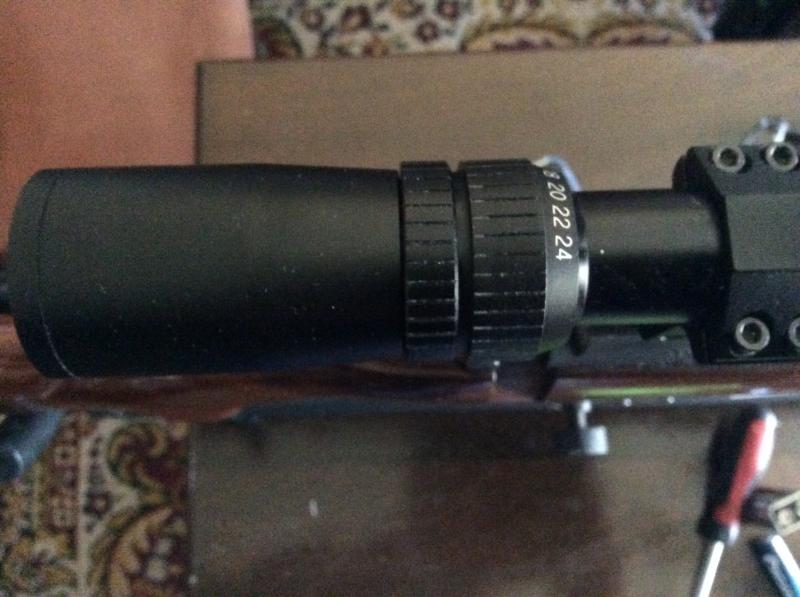 Lamentablemente, mi modesto visor (Tasco 6-24x-44, fine-dot cross) no tiene ajuste de dioptrías.