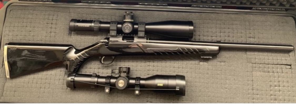 En la siguientes fotos aparece el Sako con el cerrojo modificado y sin el visor IOR Terminator que lleva en la actualidad, pero acompañado de otros dos de gran calidad: un Schmidt & Bender sobre montura Picatinny acoplada al carril de serie y un Bushnell Elite Tactical, ambos de 34 mm de tubo.