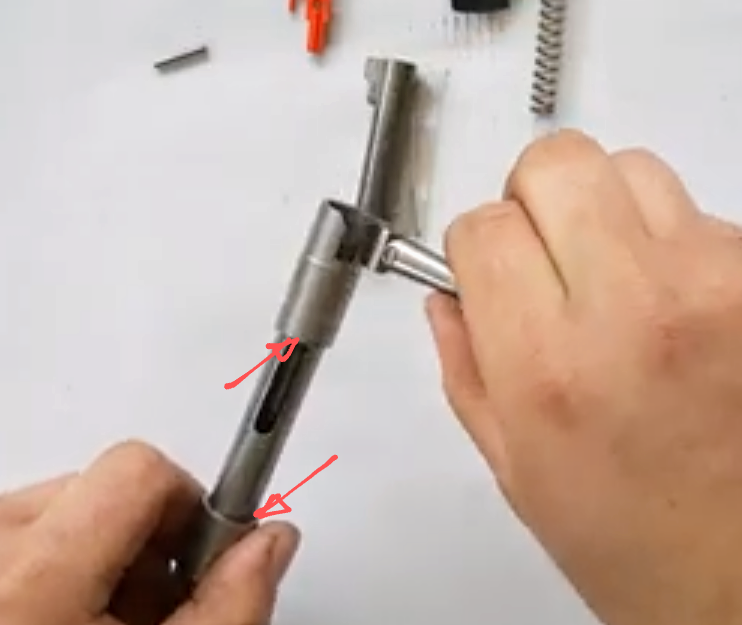 El primero, ajusta el headspace para ganar precisión. Este se coloca al final del cerrojo para conseguirlo.