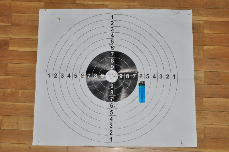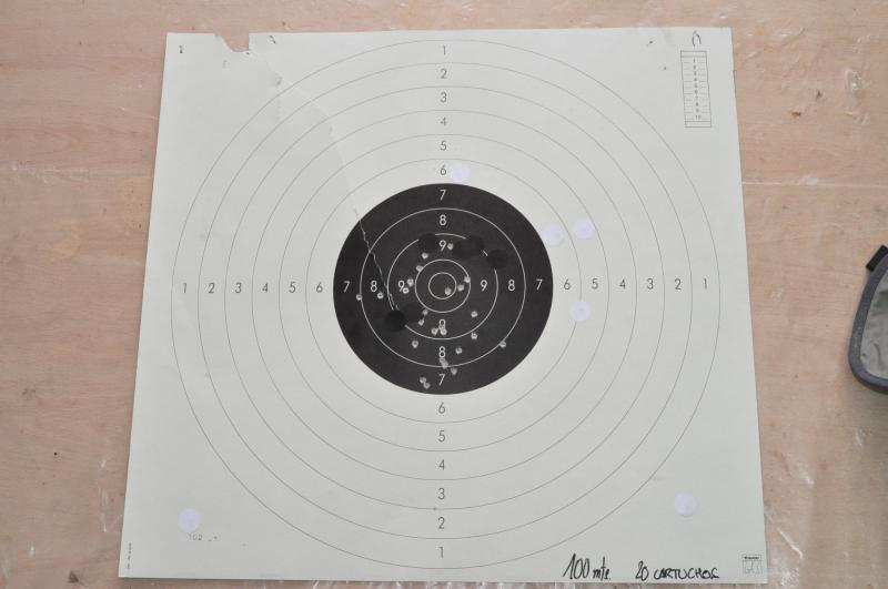 Colgaré las fotos mas tarde, pero para información de los interesados he tirado a 100 mts. con visor (4X) a 25mts con visor, y a 25 mts con miras abiertas y visor.