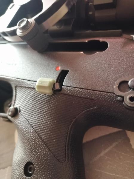 Hola, gracias por contestar tan rápido.Es que le instalé un punto rojo leapers y cuando lo puse a tiro me di cuenta que al disparar con miras abiertas el tiro iba bajo, probaré de subir la mira del cañón al máximo porque la de alza y deriva ya la tengo a tope de lo que la puedo subir.Por cierto muy chulo el protector del seguro,lastima que yo sea zurdo.