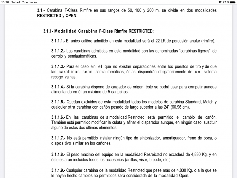Lo del Reglamento Técnico Especial de Carabina F-CLASS incluye carabinas Semiautomáticas, no solo de cerrojo. La duda era sobre la interpretación de ese artículo del reglamento en concreto.