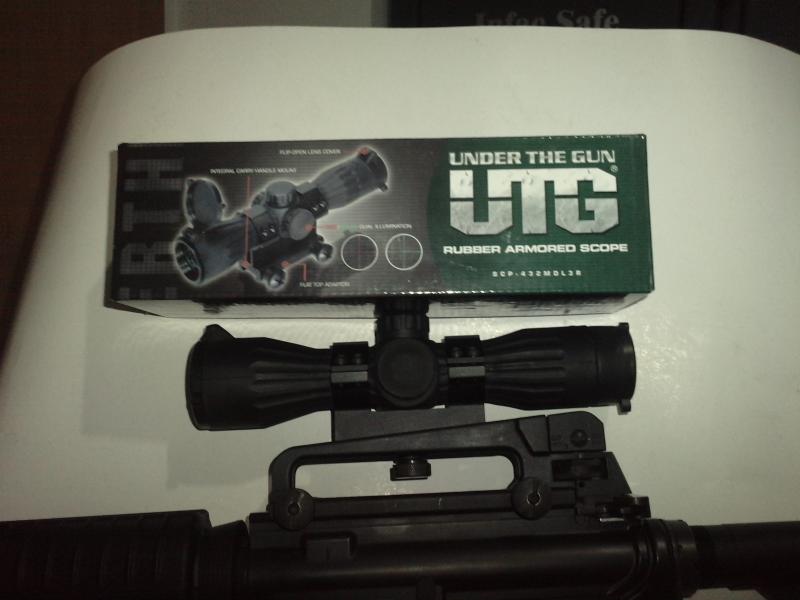 Yo tengo montado un pequeño visor de 4X32 es la casa UTG, va engomado y se acopla a la asa del m-4 o también al raíl picantiny, va de vicio, lo compre por correo y me salio muy bien de precio. Te pongo una foto para que lo veas.