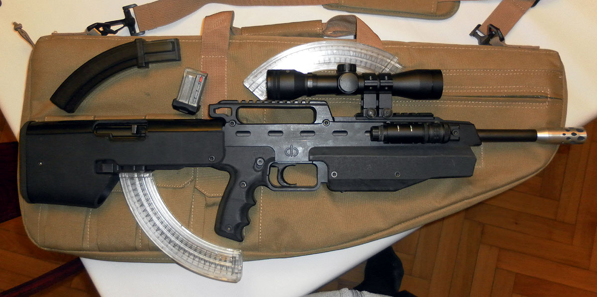 Aqui os pongo mi remington 597 con un viejo kit bulppup, esta carabina con la culata original es capaz de sacarle los colores a carabinas de br, con el kit pierde algo de precision pero sigue siendo muy precisa y lo mas importante; es divertidisima, sobretodo con los cargadores de 30...