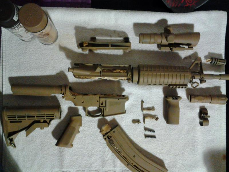 Yo también estoy utilizando la misma pintura y estoy muy contento con el resultado. Os dejo unas fotos de como se ha quedado mi M4 espero que os guste. Un saludo.