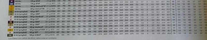 Los datos segun catalogo Hornady en español son con cañones de 61 cm. si no se dice lo contrario.