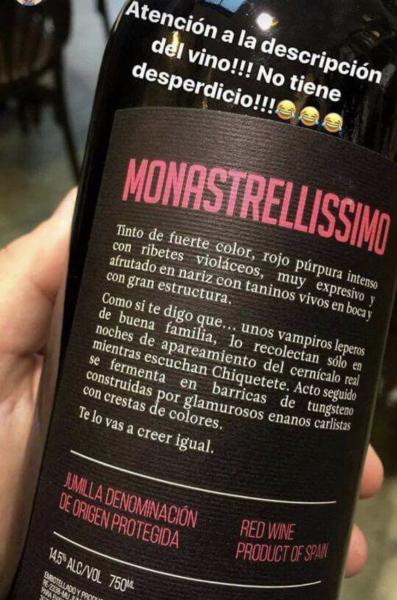 Que lo consigamos o no, es ya otra historia, pero en esta vida debemos tener todos claro que para fundir una farola hay que apuntar a la luna porque, de lo contrario, nos acabarán colando el vino de la foto como si fuera un Barón de Chirel de gran reserva: