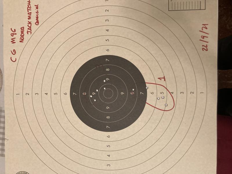 Despues de enfriar el cañón tiro el grupo 3 (en la zona negra, encima del 1. La agrupacion se me va a 6 cmts.