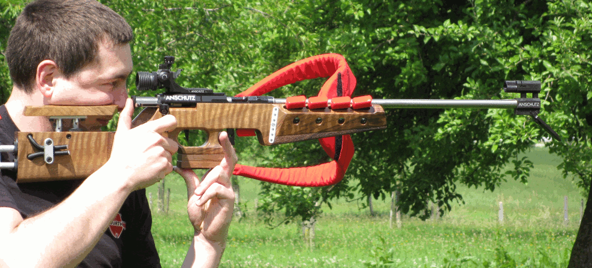 El de arriba tira con una carabina de biathlon, que el lineal. Mucho más cómodo.