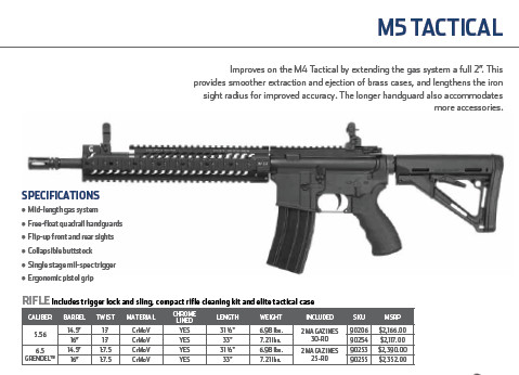El M4 en cal.223 rem y como esta prohibido en España,como que no.Un 222 rem en un cañon de 14 pulgadas se queda en un rango practico de 150 mtrs.Para tunearlo,si,pero como efectivo el M5.El cañon del Sabre de 16,75 pulgadas tiene un rango efectivo de 200 mtrs.El cañon de 20 pulgadas de un Oberland me parece demasiado para un rifle tactico,ademas viene con culata de una pieza.Con 20 pulgadas y municion comercial te vas a 250 mtrs.El Oberland o cualquier AR15 de 20 pulgadas me parece mucho trasto.Desde mi humilde punto de vista,el cañon ideal es el de 16,75 pulgadas y mas en 222 rem,insisto en que en un M4 perdemos 50 mtrs de efectividad.El M4 es mas bonito,mas corto y 100 grs mas ligero,pero menos efectivo.