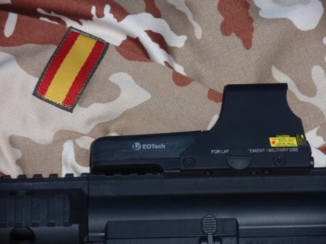 - Entonces me fuy a comprar el Eotech y es lo mejor que he hecho. El precio es el inconveniente, tuve una bronca con la empresa de mi visa (me dijeron que me iban a recortar el maximo de la tarjeta) pues fuy y me lo compré antes de que lo hicieran, jeje. Anecdotas aparte, despues de ajustarlo, va de miedo: a 50m con los dos ojos abiertos se hace blanco sobre pelotas de plastico de 50mm de diametro sin problemas.