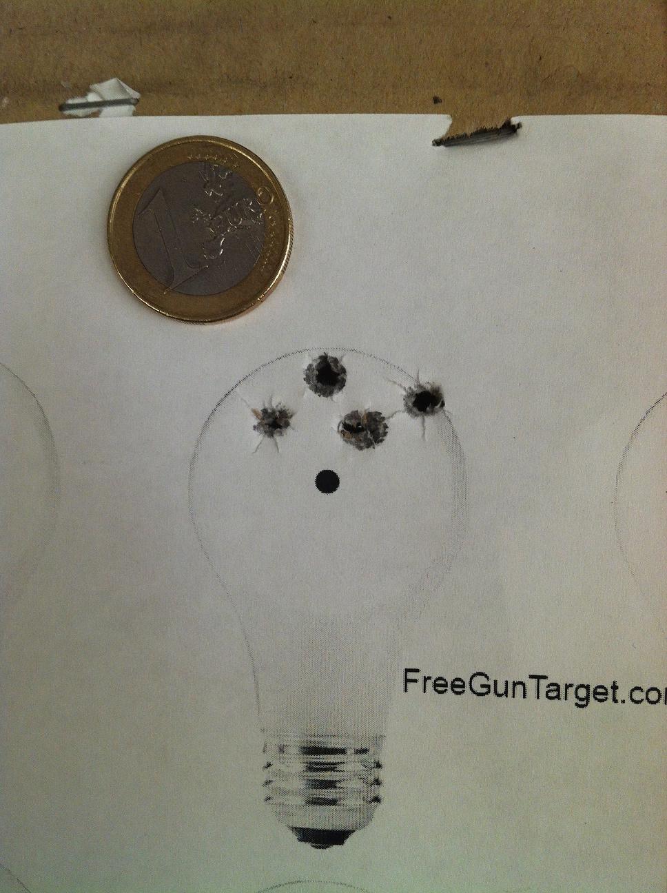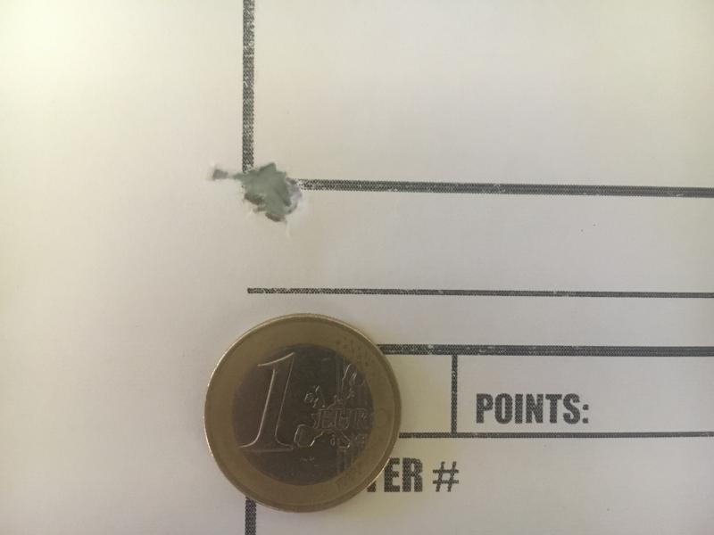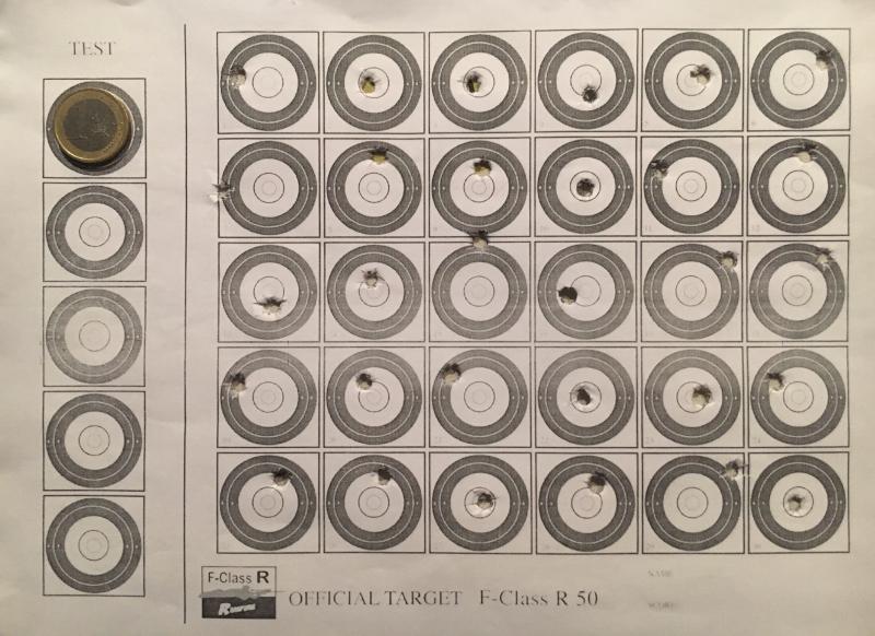 Yo estoy a la espera de probarla con blancos de f-class de 100 metros, mientras tengo esta diana en un folio a4. El centro creo que es más o menso como la diana de fclass. De hecho, pongo la de precisión grande para que comparéis el tamaño.