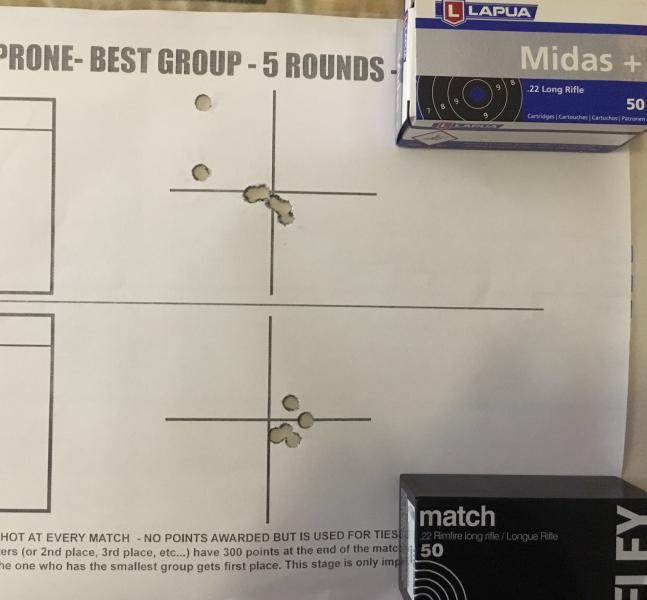 De momento a mi la que mejor me va es la sk match, estos dos blancos están hechos a 50 metros apoyado en la mochila y con un calcetín como apoyo trasero. Como visor llevo un Sightron 36X y le cambie el muelle del gatillo por uno de un bolígrafo y ha mejorado bastante.