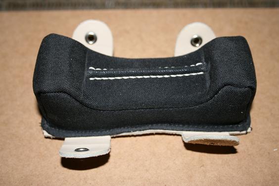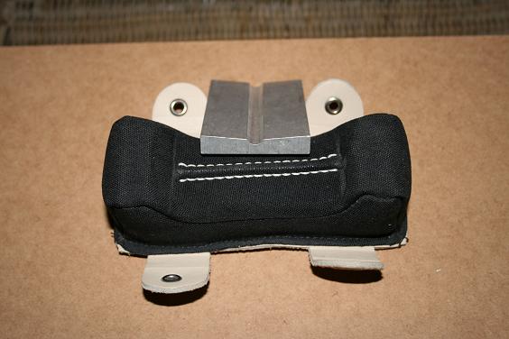 El saquete delantero en principio tiene menos complicación que el trasero porque no es ni mucho menos tan grande ni está compuesto (excepto en el caso de los últimos modelos de alguna marca). Digo en principio, porque cuando uno lo pone nuevo nota enseguida que a los pocos tiros el fondo y los laterales del saquete se adaptan al guardamanos del rifle más que el trasero. Eso en parte es así porque la torre tiene unas orejas metálicas que ciñen el saquete al guardamanos, cosa que hace que coja forma.