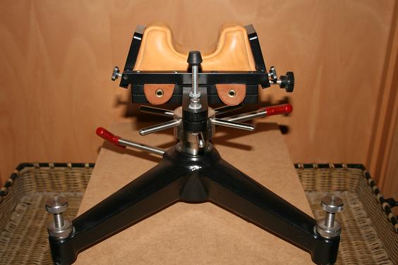 Otra que es muy buena aunque no ha cambiado mucho su look es la Hart original. En el piso de abajo sus tres patas de siempre, con algún modelo que incorpora plancha de acero para darle más peso. La innovación es el nuevo cabezal, muy bien diseñado y práctico. Se usa mucho en 1000 yardas en los USA con saquetes de hasta 5" y 6", así que debe ser bueno. Puede que un día me compre uno; está por los US$ 350 +/-. Por cierto, también tiene esta marca una torre para la culata, aceptada para las competiciones de 1000 yardas en los USA.