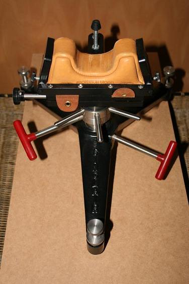 El primero es el tope para el guardamanos. Esta torre está algo anticuada en este sentido, porque el tope no permite regular en distancia, cosa que otras torres más modernas sí. La verdad es que los Tiradores de Varmint usaron esta medida de tope muchos años sin problemas; el guardamanos de un rifle de Varmint tiene forma de pala de cricket por abajo, pero plano. Yo creo que se diseñó el tope para adaptarse a esa forma estandarizada.