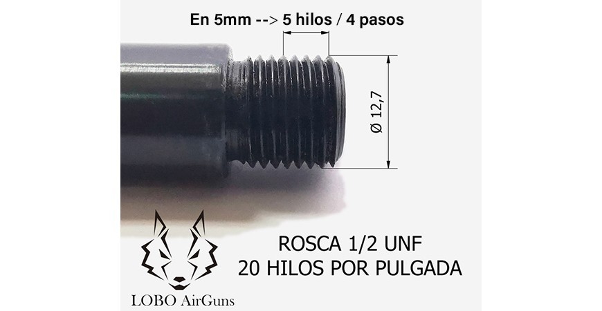 Esa rosca (1/2X20), es para armas de aire y del 22LR, es de 20 hilos por pulgada, NO 28 hilos de rosca.......