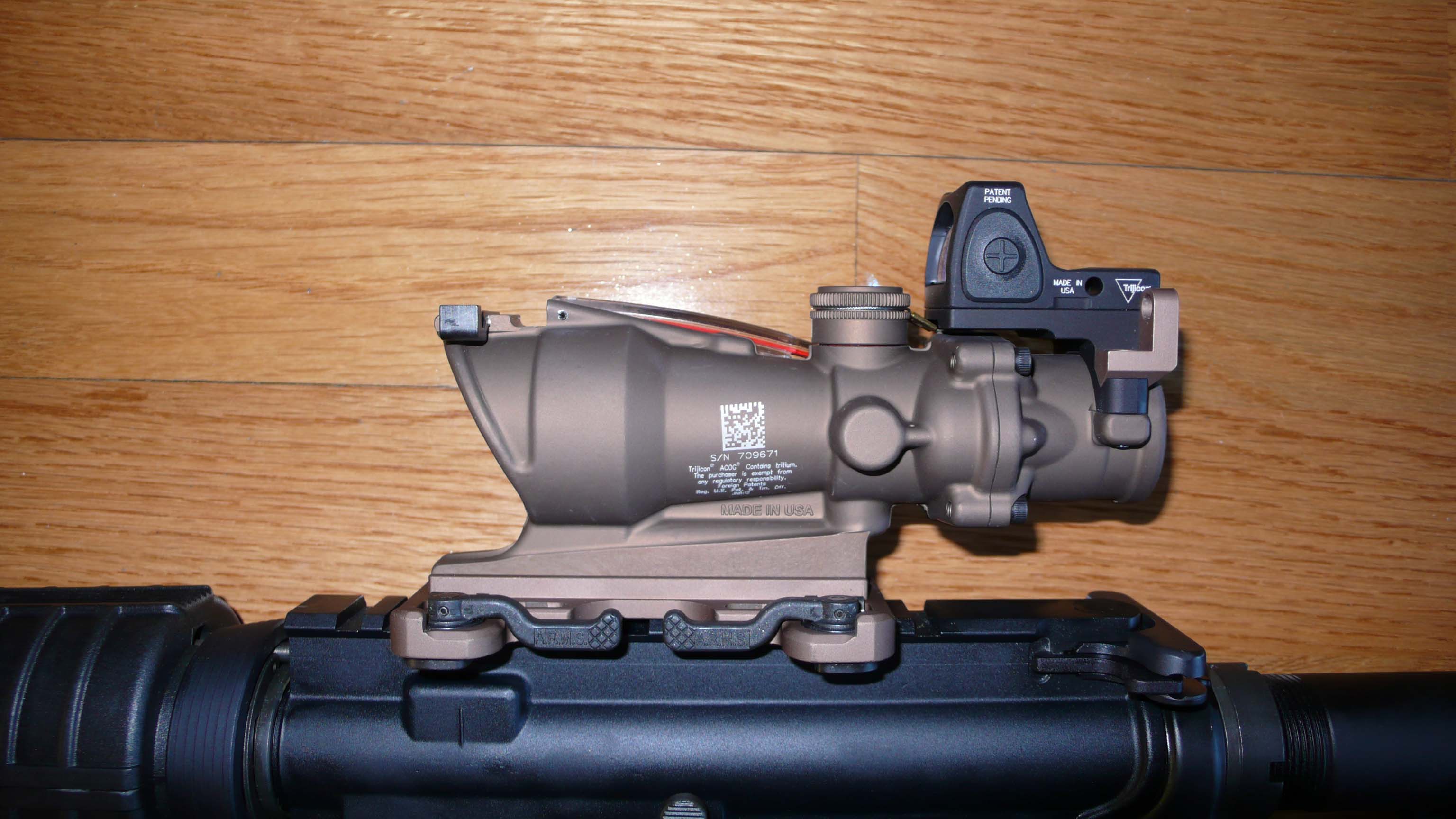 Aqui os subo el nuevo complemento que le he puesto a mi SABRE AR-15, un TRIJICON ACOG TA31ECOS, con un 4x32 y punto rojo encima, una pasada.