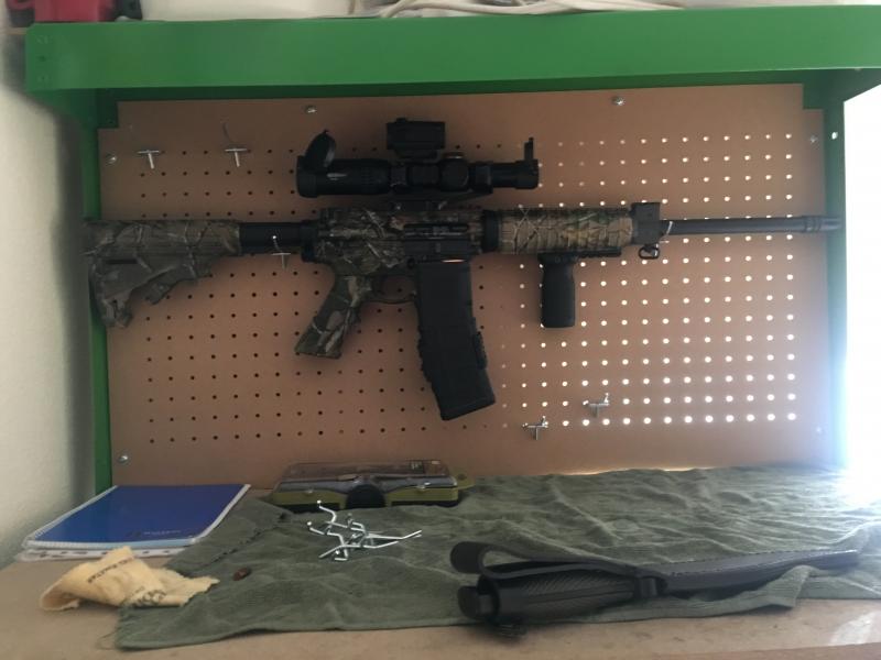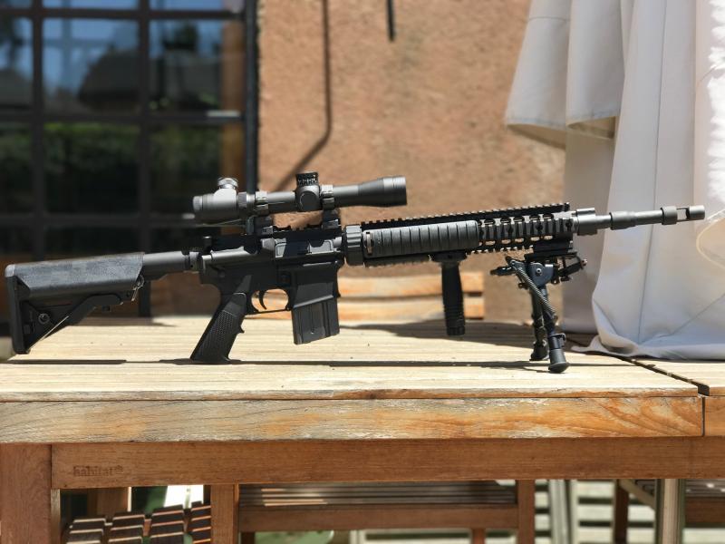 La base es un S&W 300 BLK, le he cambiado el guardamanos, le he puesto la empuñadura vertical, bípode Harris, soporte para la linterna (no la he puesto para la foto).