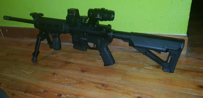 Pues nada compis os adjunto las fotos de mi S&W M&P15. Despues de darle mil y una vueltas, esta es la configuración que mas me a gustado.
