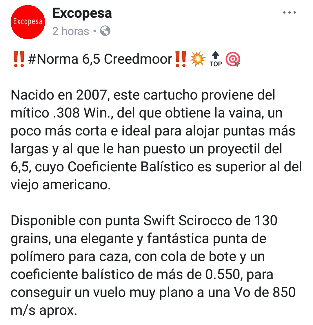 antares308 escribió:Rascador escribió:En el creedmoor no hay problemas ni de poder usar puntas pesadas con alto cb ni de que puntas liegeras no lleguen a estrías porque justamente ha sido diseñado para usar puntas muy largas (de los pesos máximos y con mejores CB de su calibre) alimentando desde cargador estándar (aics) y el largo cuello que tiene permite poner las puntas ligeras muy adelantadas sin que el engarce resulte comprometido.