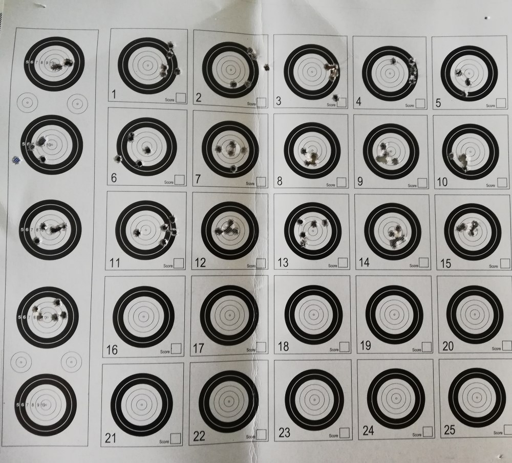 Los 5 primeros disparos de rigor para templar cañón y empiezo. Tomé la decisión de tirar todas las dianas (incluidas las de prueba) de corrido. Como una maquina de escribir.