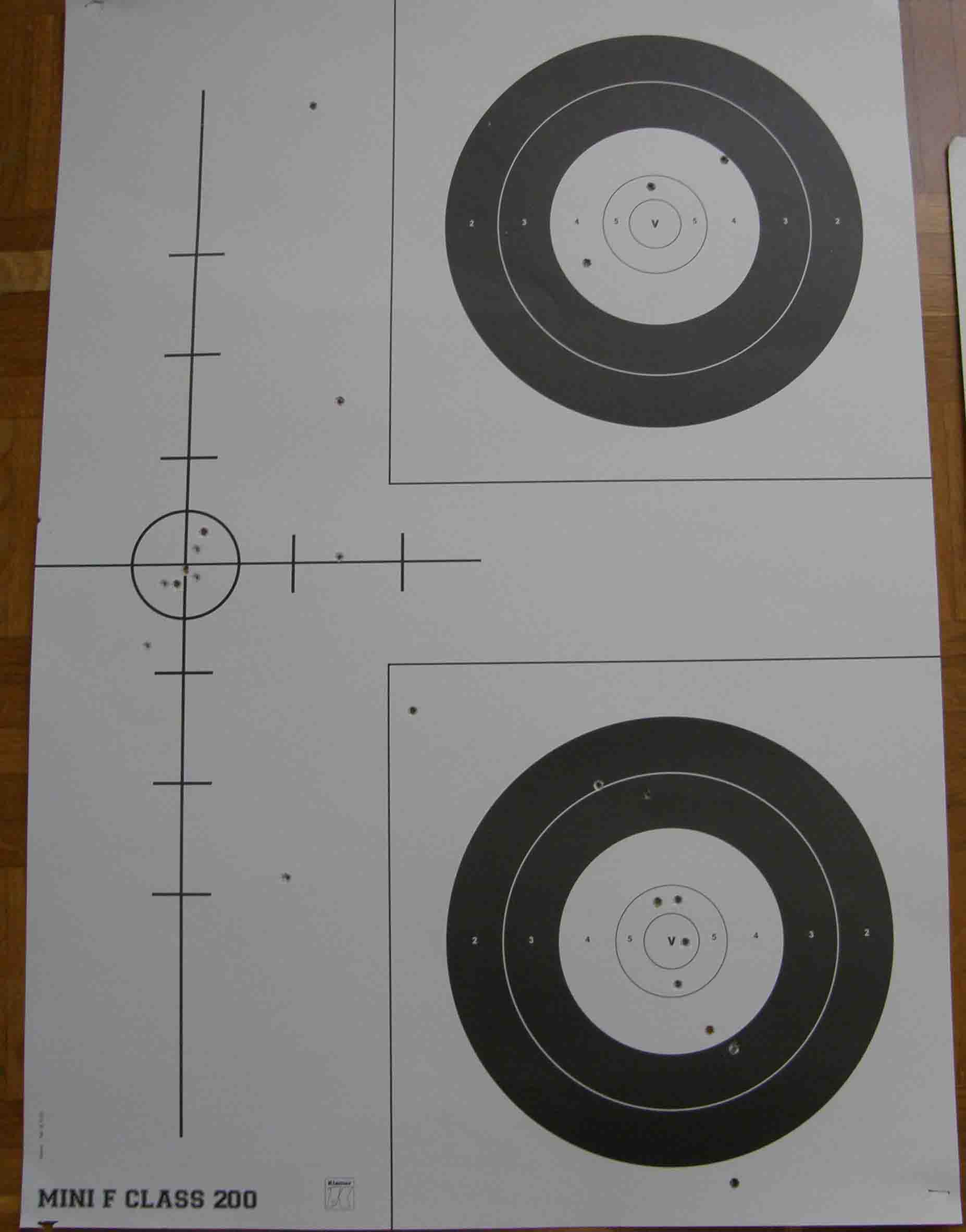 Esto es lo que hace en mi primera tirada a 100 y 200 m, con un visor malo y probando distintos tipos de municion.
