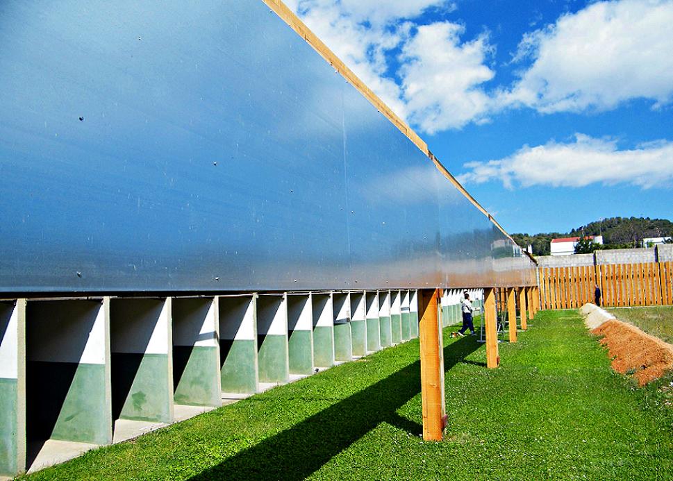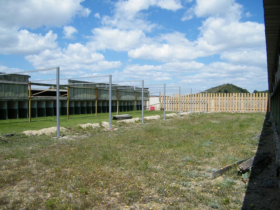 Otras fotos de la galeria de 50 metros que ya han empezado con ella también, y se puede ver como ya están los pilares del parabalas nuevo que tienen que poner y las maderas de un lateral y las del parabalas del final.