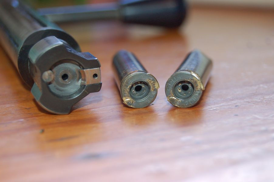 Adjunto una imagen. El culote de la vaina ha cogido la forma del cerrojo. El agujero del pistón ha tomado forma de huevo.