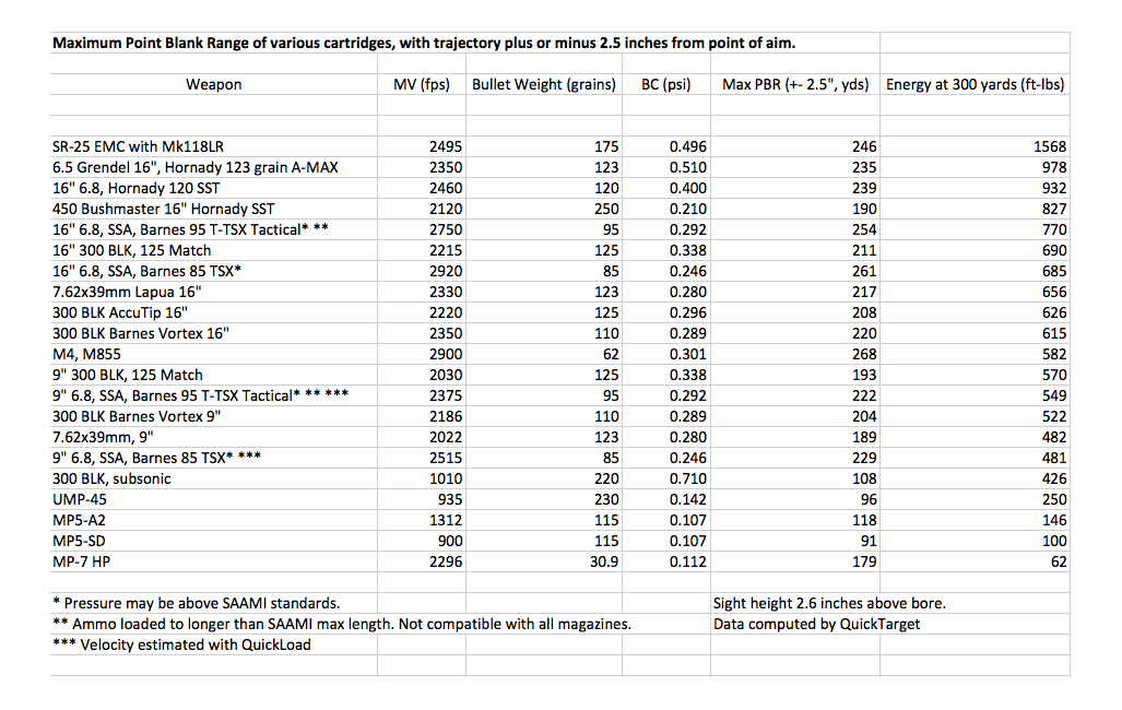 El 6.8 tiene el doble de energia que el BLK a 400 yardas pero lo que es mas importante mantiene la velocidad necesaria para poder hacer algo a esa distancia. El BLK se acerca a su alcance transsonico con lo cual cualquier cosa a 400-500 metros es totalmente ineficiente y eso sin contar la trayectoria que seria muy dificil de compensar.