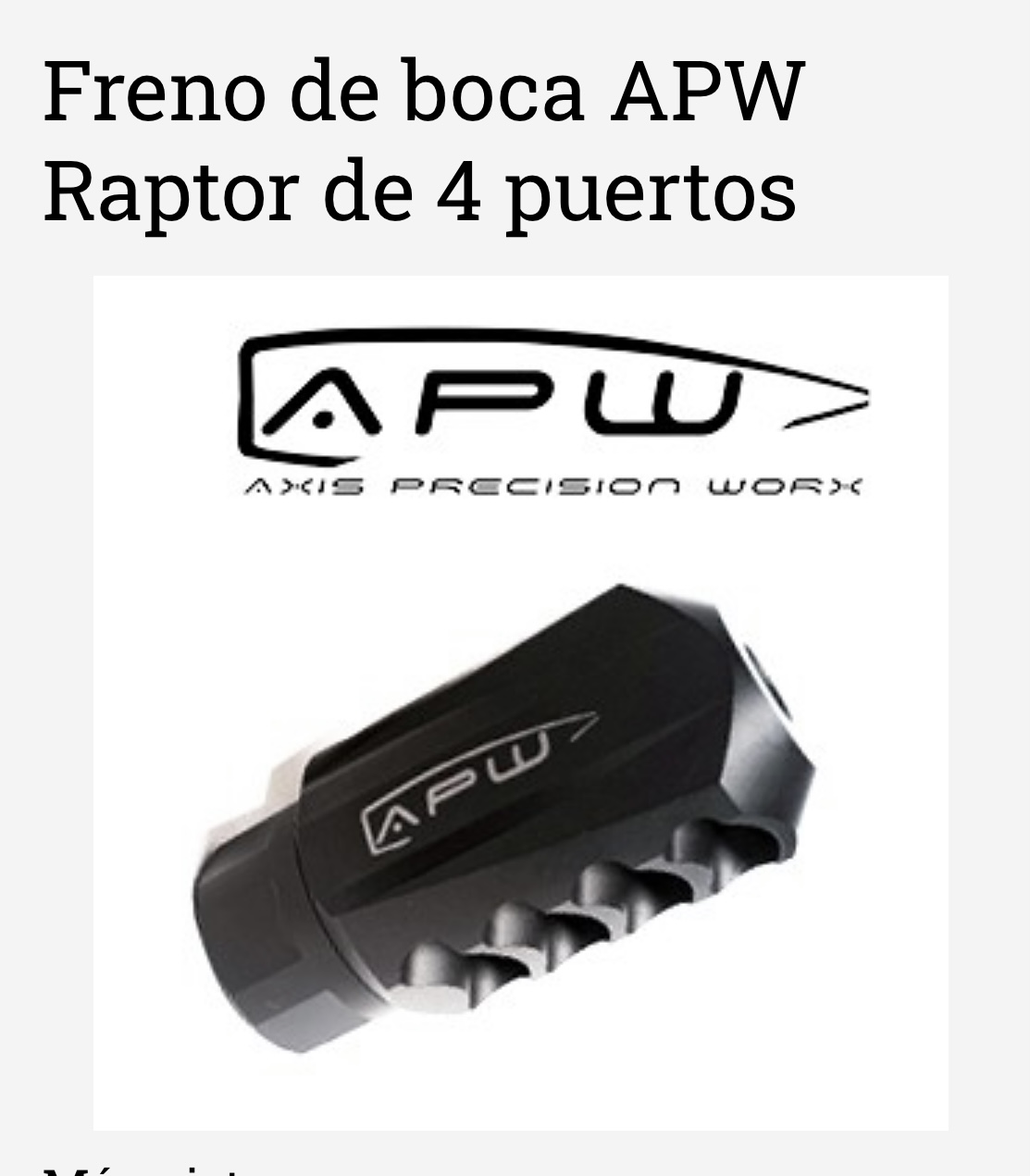 -Freno de boca modelo Raptor de cuatro puertos, fabricado por la empresa sudafricana Axis Precision Work (APW) en sustitución del original.