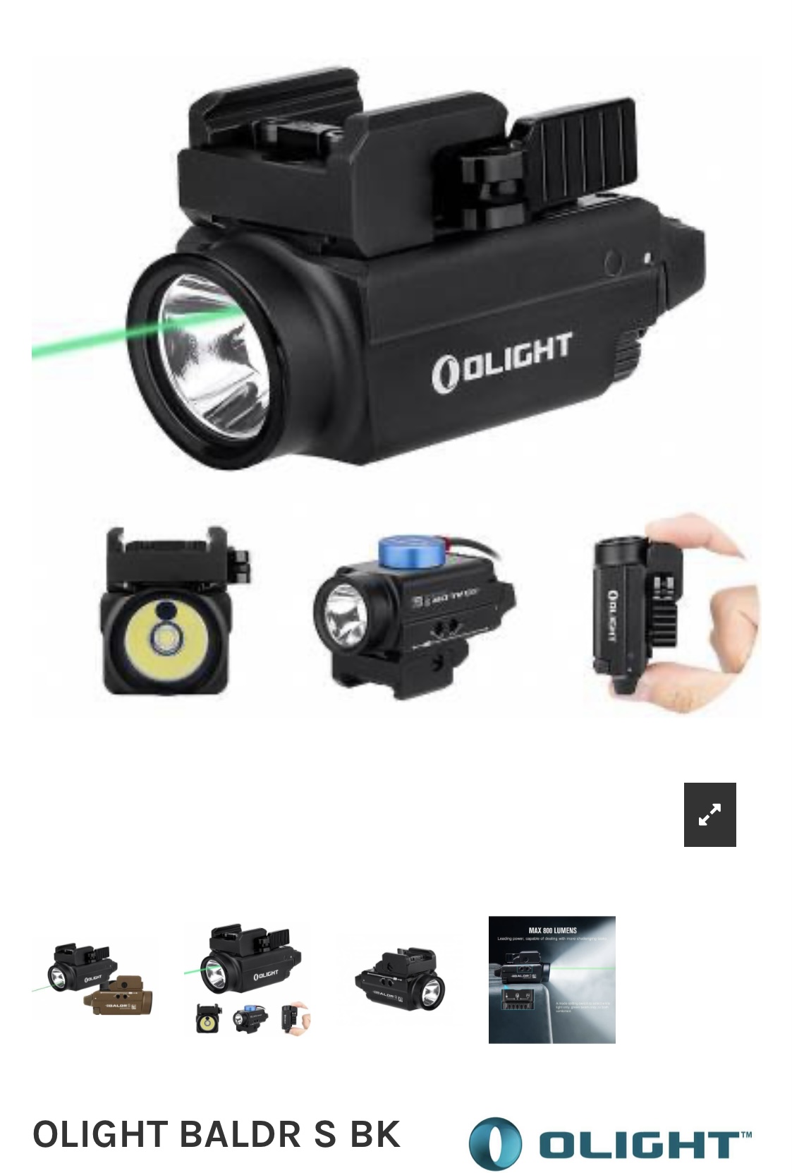 -Linterna de 800 lúmenes + láser verde Olight Baldr Mini.