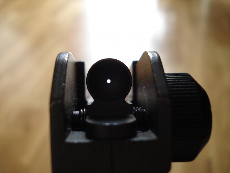Hola, si me permitís aportar mi granito de arena al asunto, adjunto unas fotos para que el que no este habituado al sistema de puntería del AR15 se pueda hacer una ideal del mismo y sacar sus conclusiones.