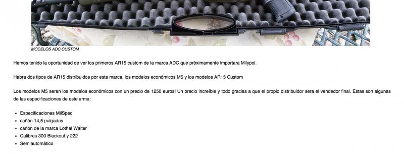 Lo pone aquí: https://kilermt.com/ar-15-adc-custom-ya-en-espana/
