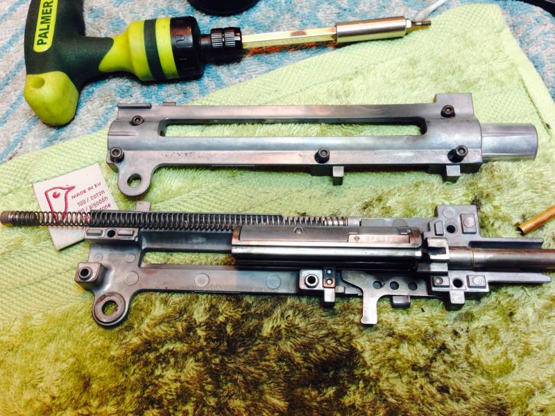 Desmonto el upper y el lower, y aparece este tornillo que regula la velocidad del cerrojo, creo que si lo aprietas aumenta la presión del muelle y el cerrojo vuelve más rápido, pero también retrocederá más despacio por tener mayor resistencia no? Munición mas potente, mayor tensión al muelle y cargas más suaves, soltar el tornillo y aflojar la presión, estoy en lo cierto?