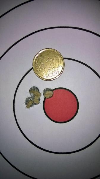 Actualmente estoy en proceso de encontrar la carga apropiada y he de decir que tras unas pruebas he conseguido meter 5 tiros en una pegatina de 1.5cm, que creo que no esta nada mal.